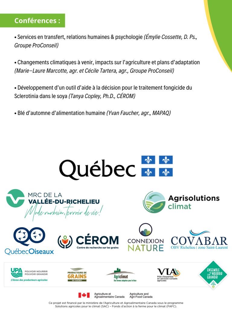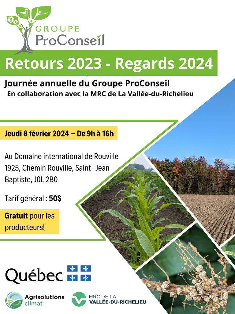 La MRC de La Vallée-du-Richelieu (MRCVR) est fière de collaborer à l’organisation de la Journée annuelle du Groupe ProConseil dont le thème est « Retours 2023 et Regards 2024 ». L’activité du Groupe ProConseil rassemblera les acteur(-trice)s du milieu agricole pour une journée complète de conférences, de réseautage et d’échanges avec la quinzaine d’exposant(e)s présent(e)s le 8 février prochain.