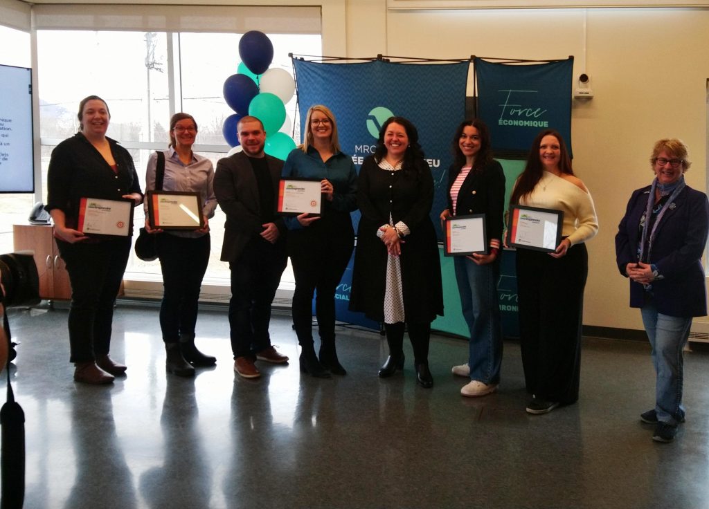 L’équipe du soutien aux entreprises de la MRCVR a accueilli les entreprises lauréates pour l’échelon local et Coup de cœur du jury pour leur remettre un certificat honorifique ainsi qu’un abonnement annuel offert par la Chambre de commerce et d’industrie Vallée-du-Richelieu (CCIVR). Les candidat(e)s à la 26e édition du Défi ainsi que plusieurs autres invité(e)s se sont réuni(e)s lors d’un petit déjeuner en présence de madame Marilyn Nadeau. La description des activités des entreprises se trouve sur la page Web.