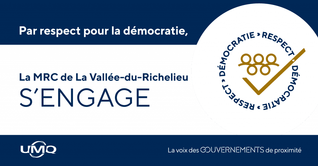 Les membres du Conseil de la MRC de La Vallée-du-Richelieu tiennent à exprimer haut et fort leur appui à la campagne « La démocratie dans le respect, par respect pour la démocratie », lancée en janvier dernier par l’Union des municipalités du Québec (UMQ).