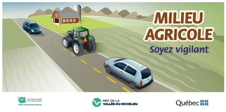 Qui dit printemps dit retour aux champs. Il s’agit d’une période intensive pour les agriculteurs qui s’affairent à préparer la nouvelle saison. Depuis 2018, le ministère des Transports et de la Mobilité durable (MTMD) a mis à la disposition des municipalités le panneau « Milieu agricole, soyez vigilant » afin de rappeler aux usagers de la route d’être vigilants, prudents et courtois lorsqu’ils circulent dans une zone agricole. En collaboration avec les municipalités et le MTMD, la MRCVR coordonne la mise en place de ces panneaux sur les réseaux routiers de son territoire.