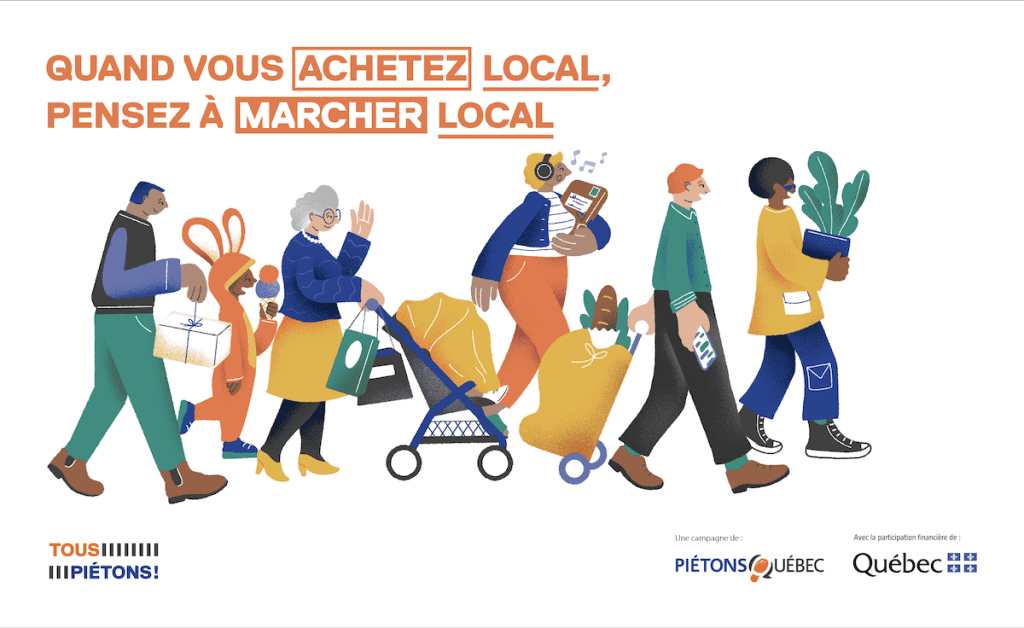 L’organisme profite de la saison estivale pour diffuser une nouvelle campagne avec plusieurs messages promotionnels : Tous piétons! Le dépanneur, l’épicerie, la fruiterie, la pharmacie, la bibliothèque, le salon de coiffure, le café ou le restaurant sont souvent plus proches de la maison qu’on ne le croit. Quand c’est possible, Piétons Québec vous invite à vous rendre à pied vers vos commerces et services de proximité et à ainsi profiter des nombreux bienfaits individuels et collectifs de la marche.