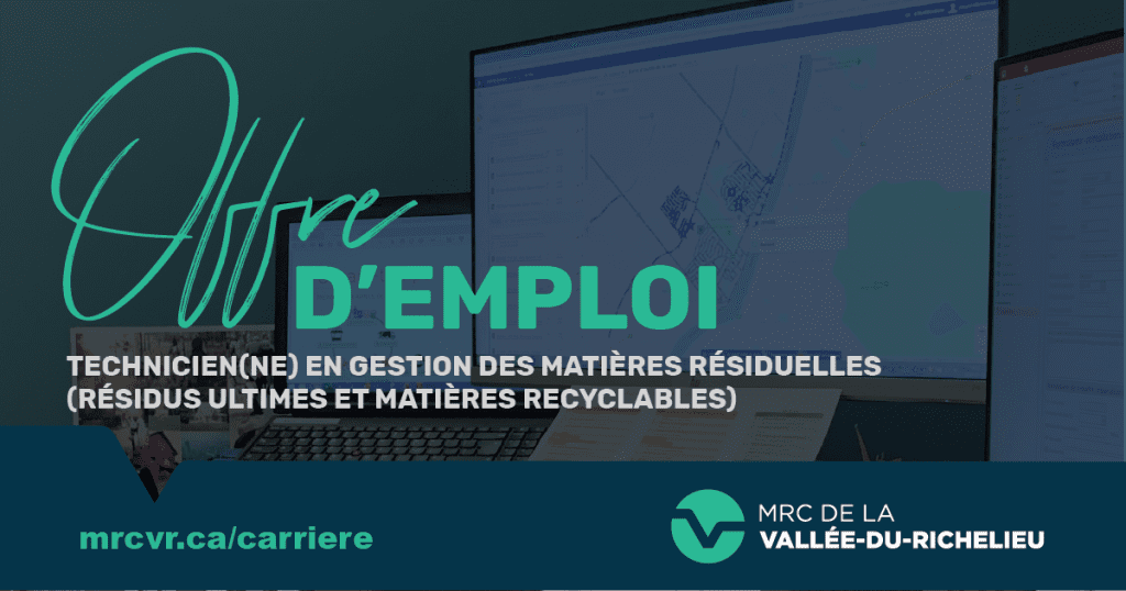 La personne effectue différentes tâches relatives aux dossiers de collecte des résidus ultimes (ordures), des encombrants, des matières recyclables, incluant les projets hors collectes tels que le recyclage du verre et des plastiques et tubulures agricoles, sur le territoire de la MRCVR, et assure le suivi nécessaire à la réalisation des activités reliées à la gestion de celles-ci.