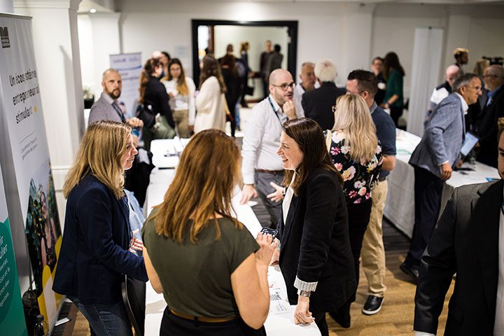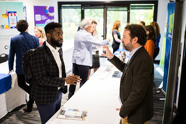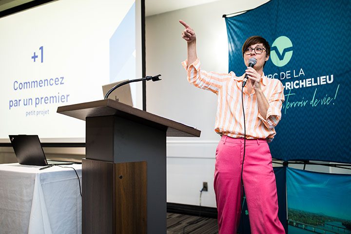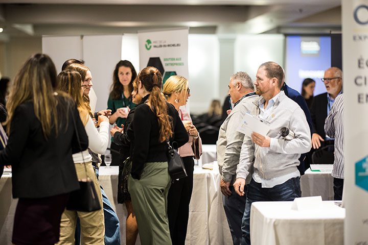 La programmation proposait la visite d’une trentaine de kiosques de partenaires du développement économique pour faire connaître leur offre de services aux entreprises. La cellule d’Action Mentorat de La Vallée-du-Richelieu a instauré des rencontres express avec les entrepreneur(e)s intéressés à en apprendre plus sur le mentorat. L’ensemble des personnes présentes a assisté à l’introduction intitulée Innover ou périr, par Nancy Morin, gestionnaire des partenariats au Conseil de l’innovation du Québec. Puis, la conférence phare sur L’Intelligence artificielle a été présentée par l’expert des nouvelles technologies et spécialiste en communication numérique, Bruno Guglielminetti. L’auditoire entrepreneurial a été sensibilisé à l’importance d’intégrer l’innovation, la transformation numérique et l’intelligence artificielle au sein de leur entreprise.