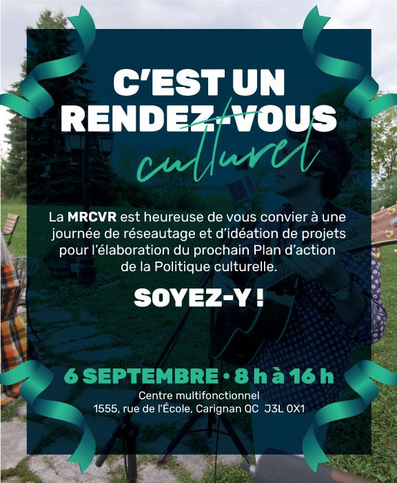La MRC de La Vallée-du-Richelieu est heureuse de vous convier à un événement de réseautage, d’idéation et de vitrines artistiques. L’objectif de la journée est d’élaborer des projets pouvant s’inscrire dans le prochain Plan d’action de la Politique culturelle.