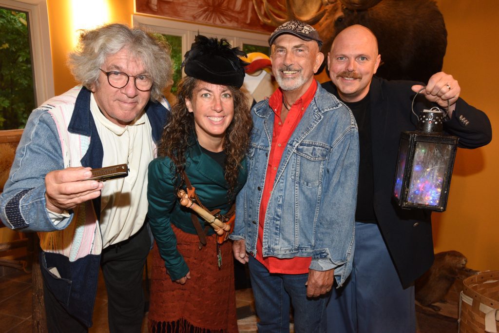 Gilles Garand, passeur de mémoire et médiateur en patrimoine vivant et musicien – Brixta, sourcière et porte-parole d’Animalis Encantus – André Michel, créateur du Bestiaire de la Route touristique du Richelieu, peintre, sculpteur et ethnographe – Yoda Lefebvre, patenteux de moments magiques et directeur artistique.