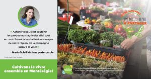 La campagne de sensibilisation d’envergure régionale qui se déroulera jusqu’à la fin de l’année, dévoile le 3e thème : l’économie locale. Acheter local, c’est soutenir les producteurs agricoles d’ici tout en contribuant à la vitalité économique de la Montérégie, de la campagne jusqu’à la ville!